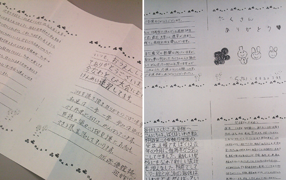 同封されてきたメッセージには、子供さんからの感謝のメッセージやお母様、祖母の方のメッセージ等もありました。